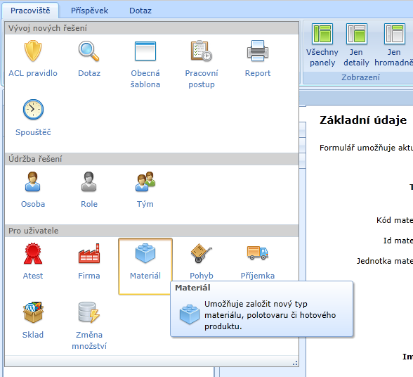 Receptura je každý takový materiál, který má zaškrtnuto, že jej lze vyrobit.